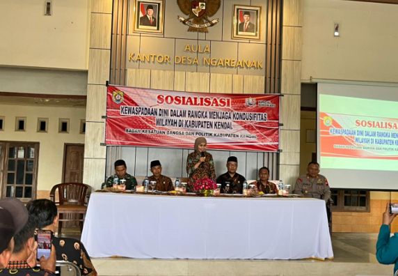 ngareanak.desa.id - Demi menjaga stabilitas dan kesejahteraan wilayah, Badan Kesatuan Bangsa dan Politik (Kesbangpol) Kabupaten Kendal menggelar Sosialisasi Kewaspadaan Dini di Balai Desa Ngareanak (Kamis / 30 Oktober 2025). Acara penting yang dihadiri langsung oleh Bupati Kendal, Dyah Kartika Permanasari, S.E., M.M. ini, juga melibatkan partisipasi aktif dari mahasiswa KKN-REG 85 Posko 8 Ngareanak. Kegiatan tersebut diikuti oleh Lembaga Desa yang ada di Desa Ngareanak.